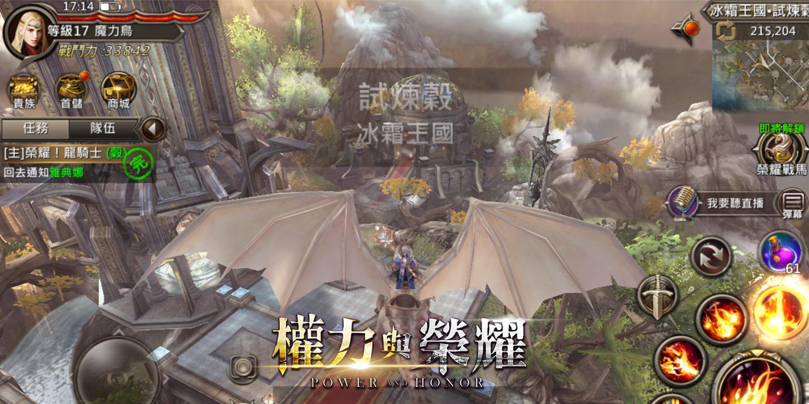 極致華麗的3D遊戲畫面,360°高清自由旋轉的視角,橫跨遊戲史上最遼闊國度,騎乘絕品飛龍穿梭於金碧輝煌的城堡之中,帶你探索那中世紀神秘而古老的王國,品味遊戲內細膩渲染的光影效果,為你展現美輪美奐的極致風光,震撼人心的視覺盛宴!