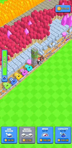 As you progress, merge various railway carriages to enhance your train's capabilities and aesthetics. Expand your empire by laying intricate railway tracks across diverse landscapes, connecting distant lands, and unlocking new possibilities. Collect a wide range of resources along your journey, each playing a crucial role in growing and upgrading your train empire.