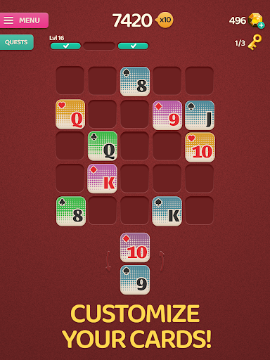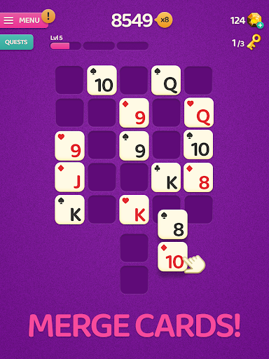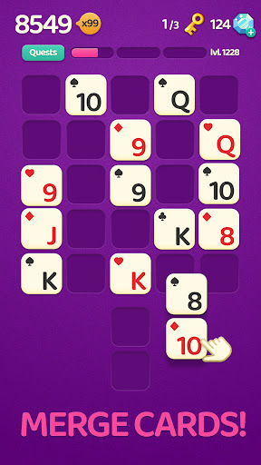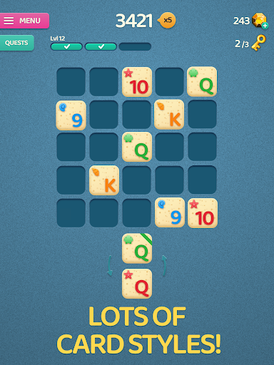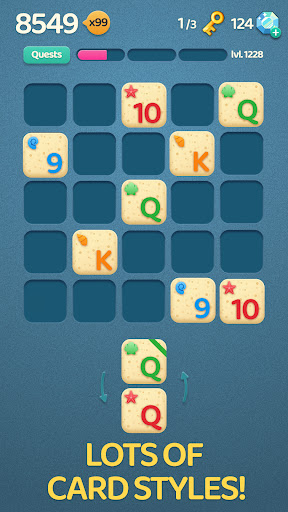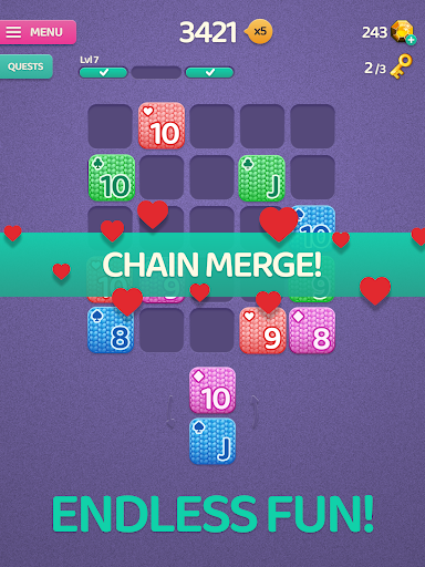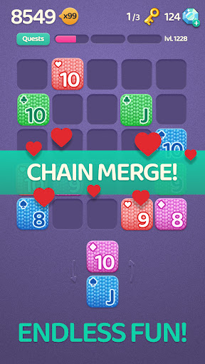 Merge 3 or more blocks with the same rank, complete quests and achieve the best score in each run! 🃏