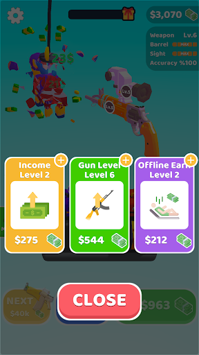 - Shoot and earn money by tapping on the screen.