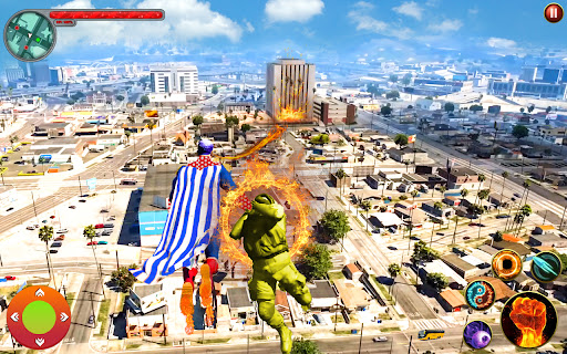 Get the benefits of fire superheroes and win the fight like a rock star in gang games of Fire Hero Games. You have played many gta games and robbing games but this flying superhero game will give you a unique game play of superhero against mafia boss. Alone you are a one man army as a fire superhero, so you do not need any light heroes with you in fire superhero flying games. In Fire Flying Hero Games is a flying fire hero vs city of gangsters, where bank robbery is common so come and save the city and beat the criminal mafia. Flame flying superhero games is full with all the action and adventure required for flame superhero battle. Flying superhero robot can easily fight in gangster city against robbing and underworld mafia. Control you flame superhero with fire power in superhero fireman game. Only fire speed hero can handle superhero rescue mission started against Miami gangster in flying superhero games.