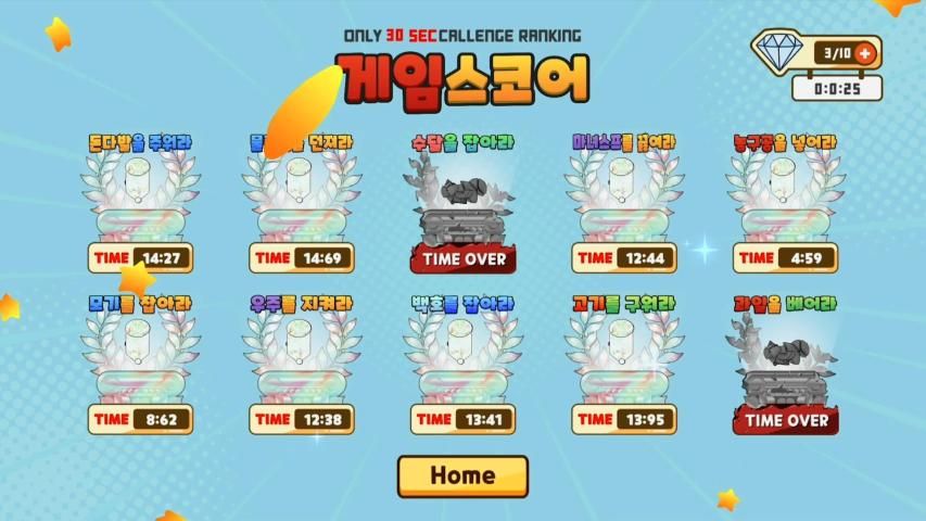첫 번째, 게임 시작과 동시에 빠르게 진행되는 10개의 게임.