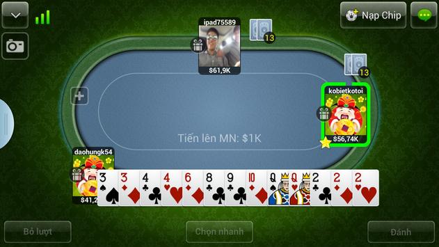Game chứa đầy đủ các thể loại: Tien Len Mien Nam, Tien Len Mien Bac, Soc Dia, 3 Cay, Pho, Rong Ho, Baccarat, Mau Binh, Bau Cua, Xi To, Lieng, Chan, TLMN, TLMB.