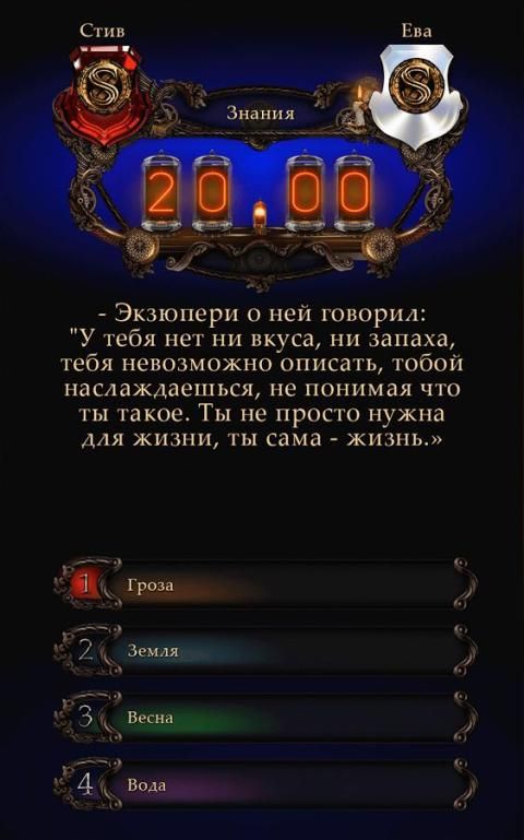 Test yourself in short intellectual duels with other players.