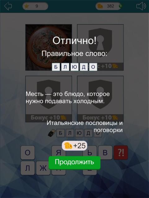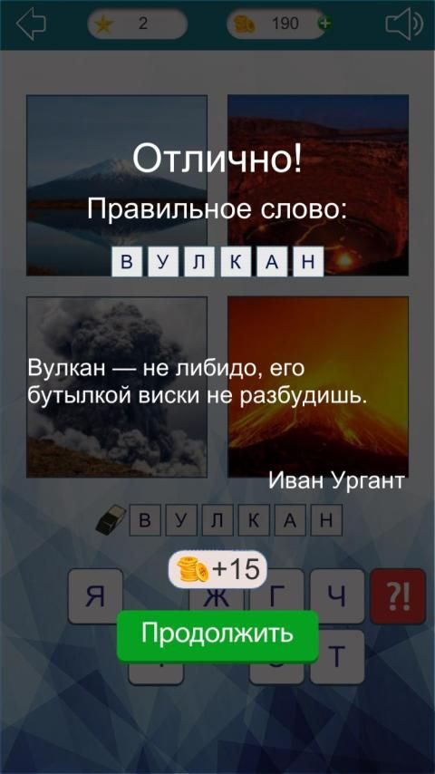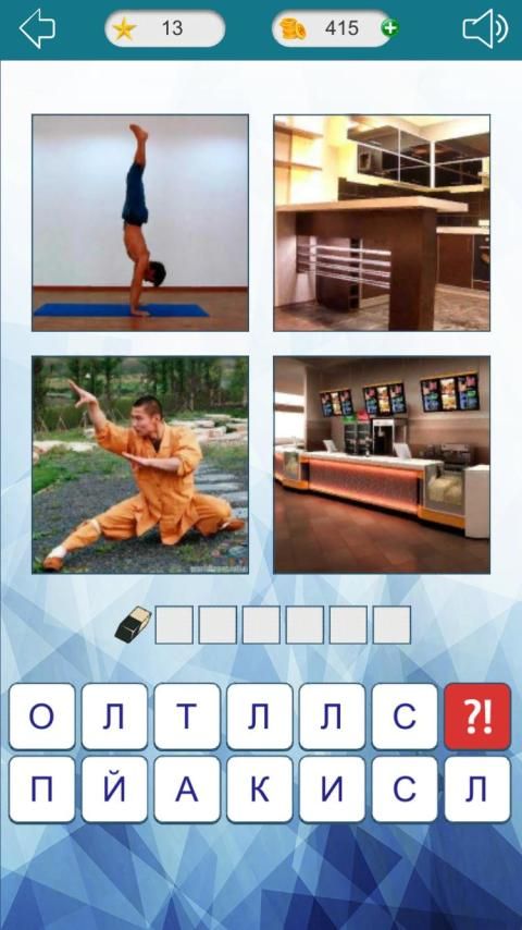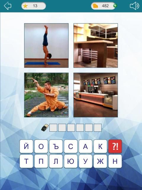 Как только игра начнется, вы увидите 4 фото и буквы. Найдите общее между фото - это и есть загаданное слово. Введите его, используя доступные символы. Для более интересной игры мы закрыли 3 фотки, вы их сможете открыть, но за каждую не открытую картинку вы будете получать бонусы.