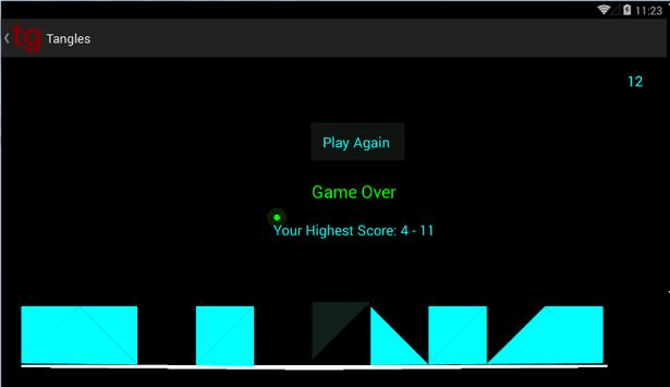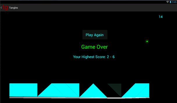 Tap, tap on your screen to guide the falling triangles to create neat blocks on the glass slab below. Beware of the smart foes moving about randomly and also do not break the glass slab with the tip of the triangle. Tangles is a simple, strategy-based game that is sure to give you hours and hours of pure entertainment.