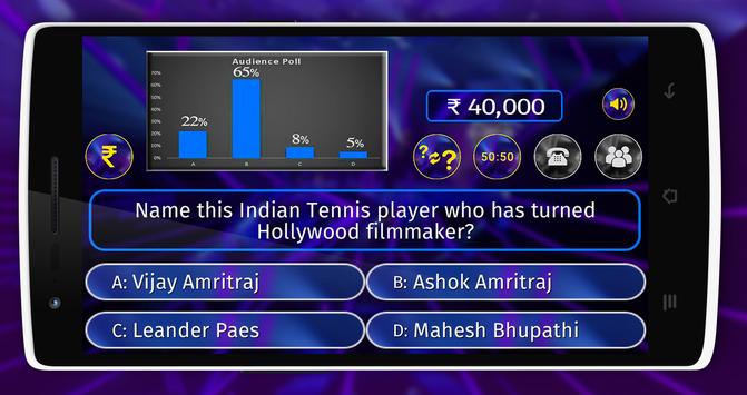 4. 50-50 : In this help line, player can get rid of 2 wrong options.
