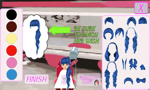 You are the owner of the salon. The clients want to look like barbie dolls in the end of your services. Everyday there is a goal (money you make) and for that you have to make your clients happy. You have to satisfy the client’s order expressed by the bubble above the client.