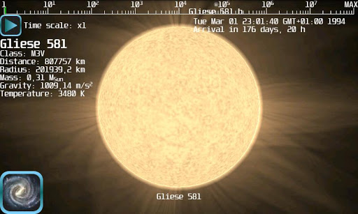 Realistic 3D space travel simulator and planetarium.