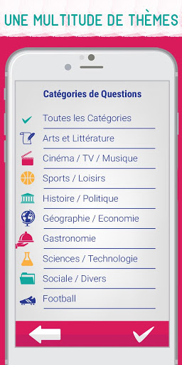 Une multitude de questions de culture générale réparties en différentes catégories vous attendent pour mettre l’ambiance dans vos soirées.