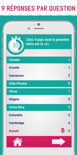 - 9 réponses par question : Il peut y avoir plus que 9 réponses par question, cependant le but est de trouver les 9 réponses proposées par Devineuf en 1 minute !