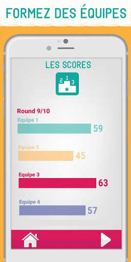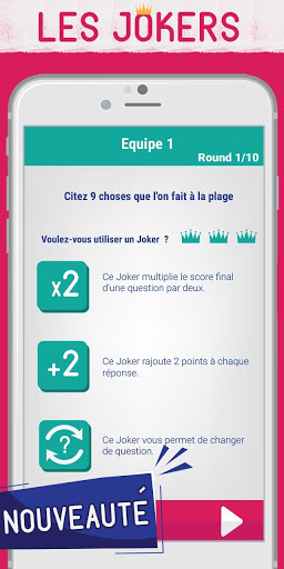 • Création de parties à vos goûts, en choisissant le nombre d’équipes, de rounds et même les thèmes de questions