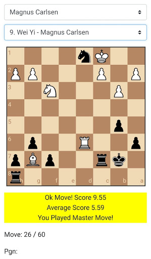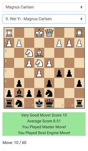 Then it plays the move played by the grandmaster in the game and asks you to guess the move again.