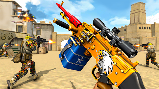 Carry out counter terrorist attack in new gangster shooting games and terrorist shooting as a smart fps shooter in gun games. There is a call to perform the duty of counter terrorist ops and critical shooting strike in fps shooting games. Control the wave of terror in counter terrorist game across the region where a number of terrorists and gangsters have surfaced in the different areas inside gun games offline along with gun shooting game and fps shooting ops game. In gun shooting games you are appointed to fight the endless war against terror being the best fps shooter to conduct the counter terror attack in commando gun shooting. Win the battle as a real terrorist shooter to wipe out the existence of war mongering criminals hiding in the different hotspots in fps shooting games. The highlighted feature of gun games that stands exclusive in the critical shooting strike is modern weaponry containing automatic machine guns, crank gun, mini gun and RPG (Bazooka) and many more. To add more challenge, you will be fighting the terrorist war in different environment and scenarios ranging from desert, ruins, city hotspots and den. Dealing with gun games offline, play as a professional shooter in gun shooting games and stand victorious of the critical battlefield.