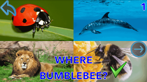 The game application is present a professional voice. The child, pressing the audio button to hear uttered the name of the corresponding animal.