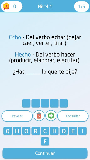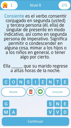 Узнайте новые слова, испанские орфографии, узнайте синонимы и антонимы, веселая игра, в которой вам придется пройти слово угадать текущий уровень.
