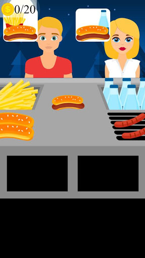 hot dog stand game. sell hot dog and fries. make hot dog sandwich. serve the customers. clean the stand. easy and fun game. download for free.