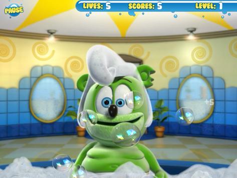 Good clean fun with Gummibär - everyone's favorite gummy bear! Join him as he takes a bath and pop all of the bubbles before they get away! See how many levels you can get through.