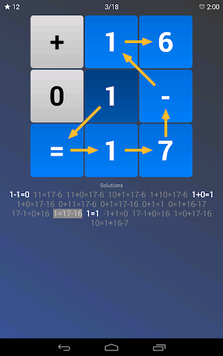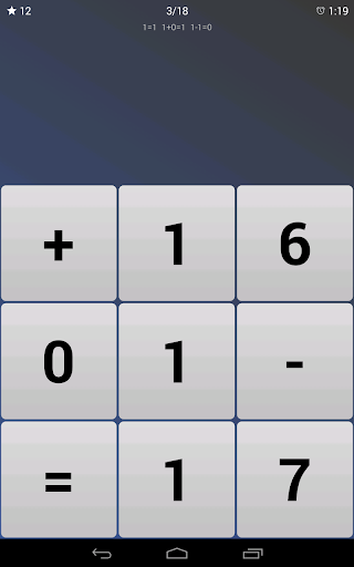 The goal of the game is to find possible true equalities in a grid of numbers, relation signs and operators. The game is finished when all possible solution is found.