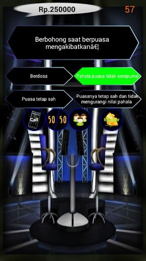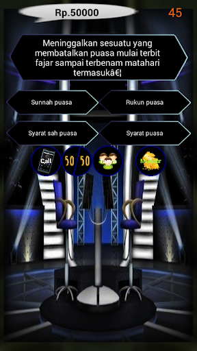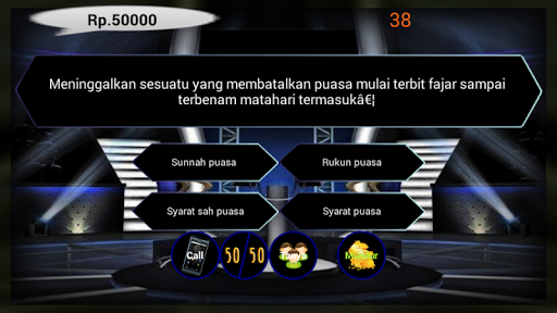 2. 50:50 : bantuan ini digunakan untuk menghilangkan 2 jawabang yang tidak benar.