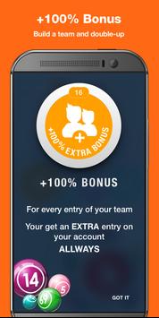 Every week you have the option to give away, absolutely free, up to ten lotto tickets to friend for the upcoming draw. Your fiends can select their own lucky numbers and will automatically be connected to your mooojo lotto team. From then on every entry on their side will give you a bonus entry as freebie to your private account.