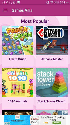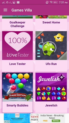 Games Villa is the application where people can play lots of html5 based games by choosing their favorite category, We are providing many games in only one application, So you just have to download only one application to play many games... :)