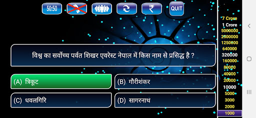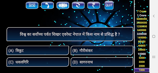 ★ Game will be covering various topics like GK (General knowledge), Indian History Quiz, Cricket Quiz, Bollywood Quiz, Film Quiz, History Quiz, IQ Quiz in Hindi & English, International Quiz and questions from almost all the topics like Social Science, Science, spiritual questions and difficult questions too...