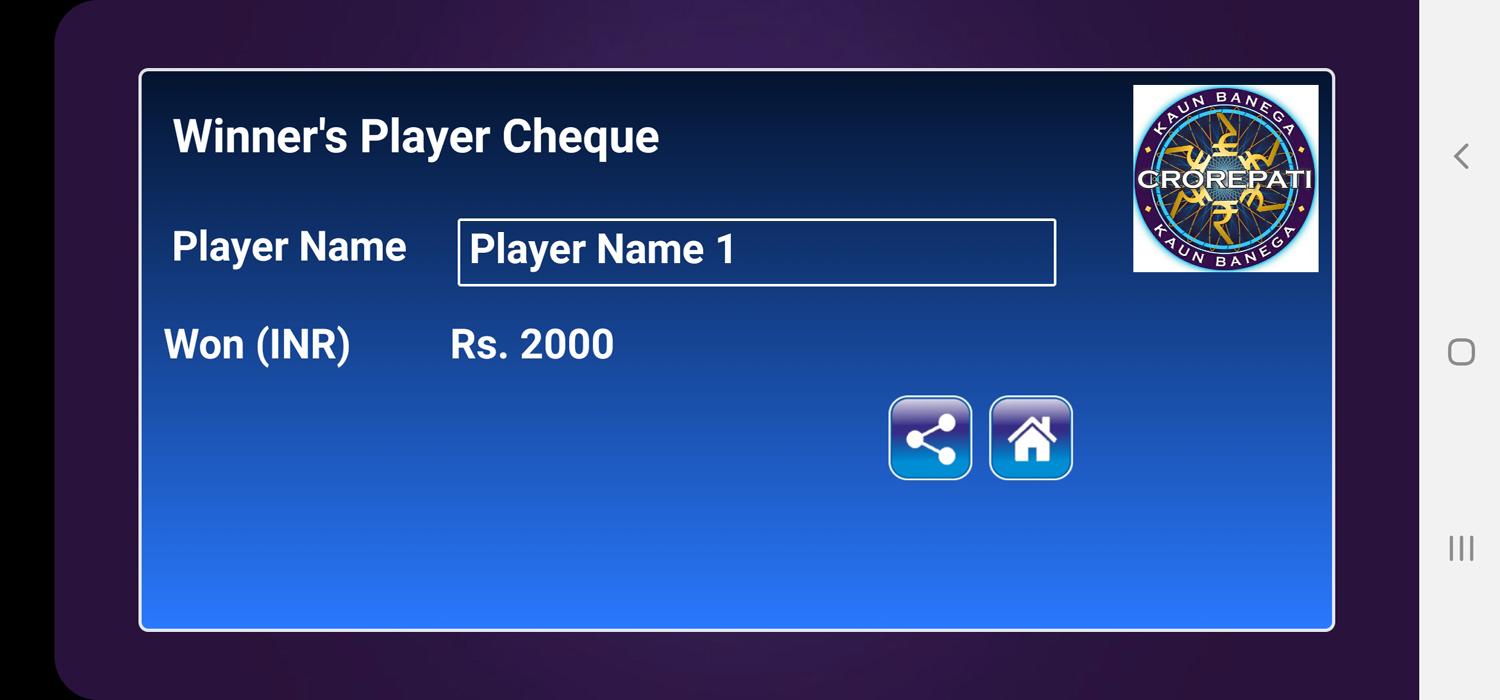 ★ This game does not represent any official tv channel and we do not provide any real cash or cheque through this game. This is a simple Quiz type game only made for purpose of improve general knowledge of our users. Drop us an email if you have any dispute.