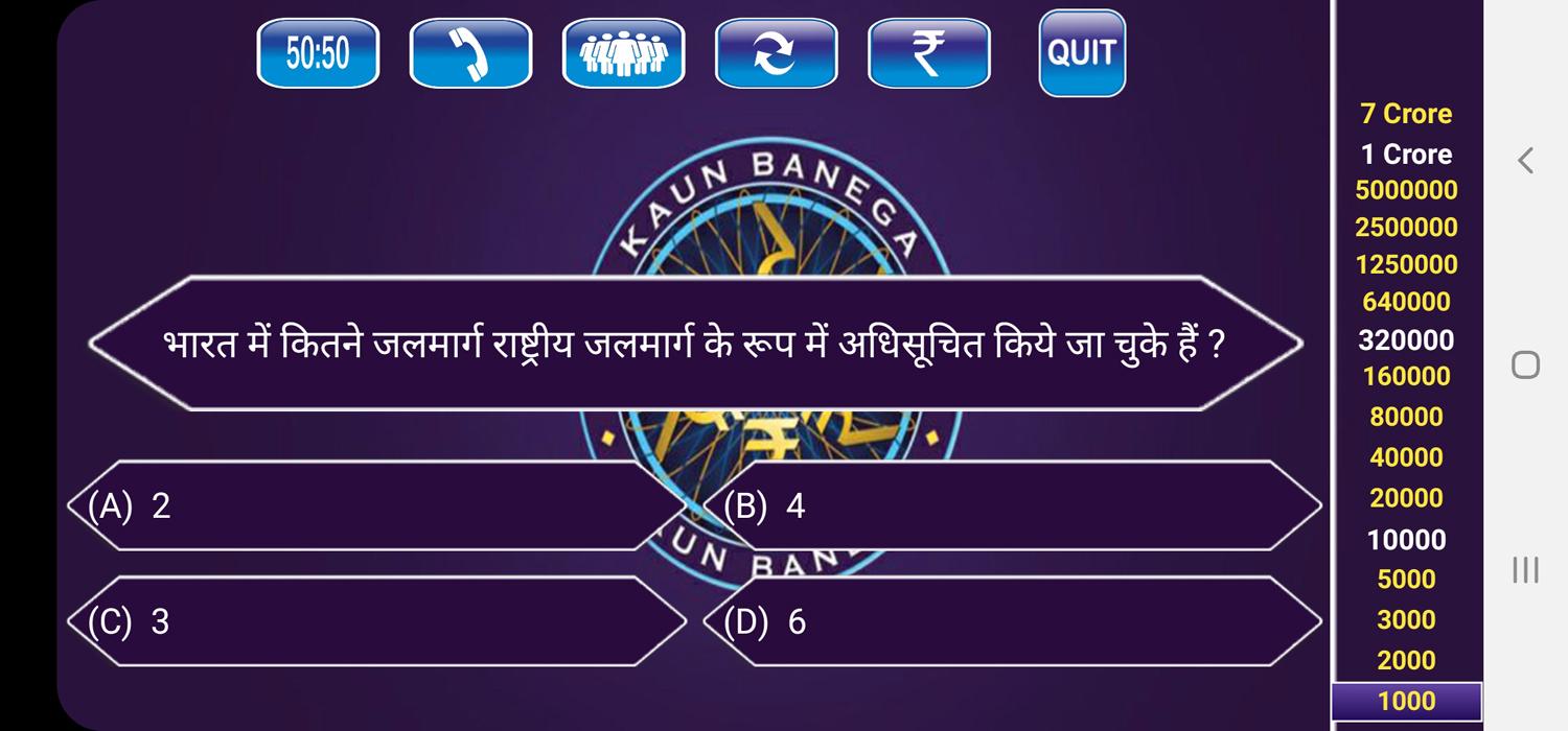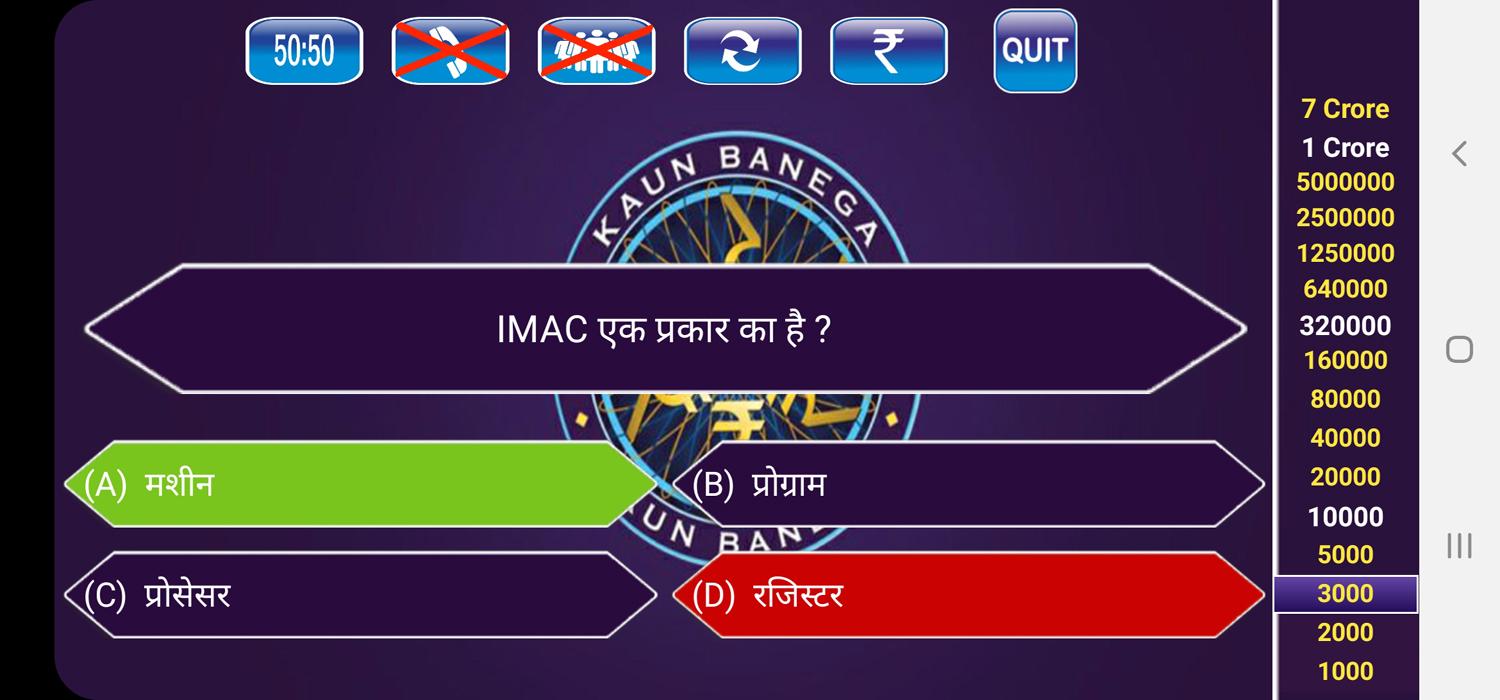 To test your IQ and intellect with entertainment we have created KBC Quiz 2020 in Hindi - Best Crorepati in Hindi game and it is the very updated game with cool graphics and amazing sound that will give you the experience as if like you are sitting on the Hot Seat at the set of Best Crorepati in Hindi.