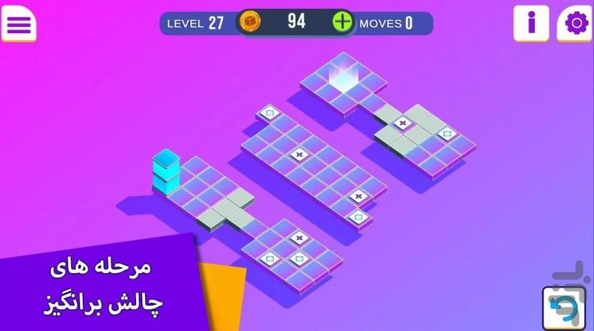 مکعب جادویی یه بازی پازلی جذابه که توی اون باید یه جعبه مستطیل شکل رو با لمس صفحه نمایش به هر سمتی که میخوای روی صفحه ی بازی به حرکت دربیاری، جعبه باید روی دریچه ی روشن شده قرار بگیره تا مرحله رو رد کنی و وارد مرحله ی بعد بشی فقط حواست باشه جعبه از لبه ها سقوط نکنه !!