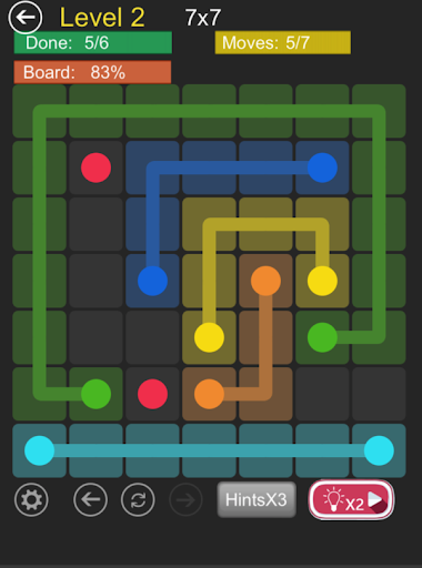Simply connect more dots of the same color on the board and clear them. Connect matching colors with pipe to create a Lines. Pair all colors, and cover the entire board to solve each puzzle in Color Maze. Free play through hundreds of levels, Free gameplay ranges from simple and relaxed, to challenging and frenetic, and everywhere in between.
