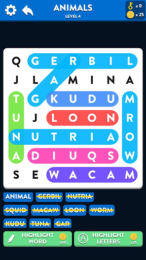 Experience word searches like never before with beautiful graphics, nice colors, an an intuitive interface. Pick any category of interest and get to work finding the hidden words!