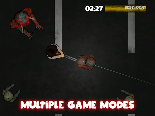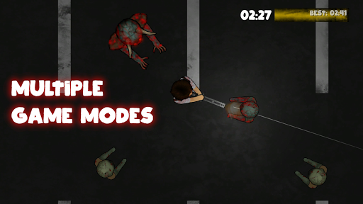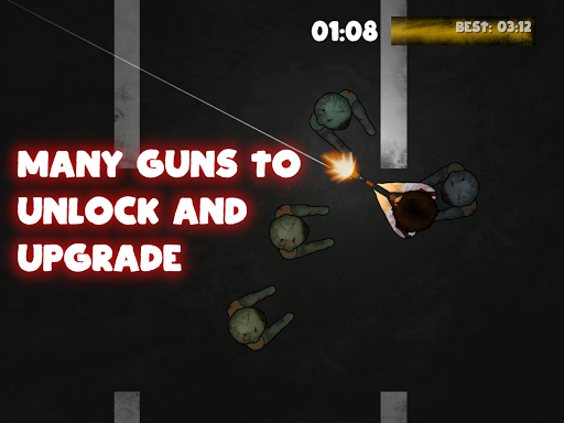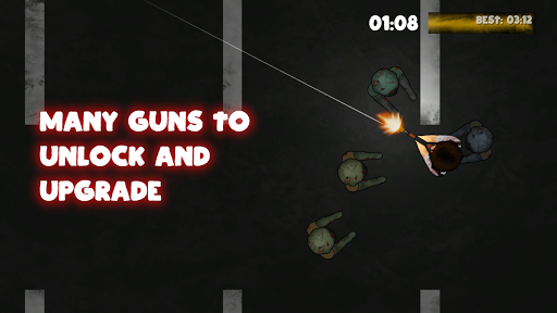 Try to survive as long as possible. The zombies will start spawning faster and become stronger as you progress. If you manage to survive for some time you can unlock new weapons.