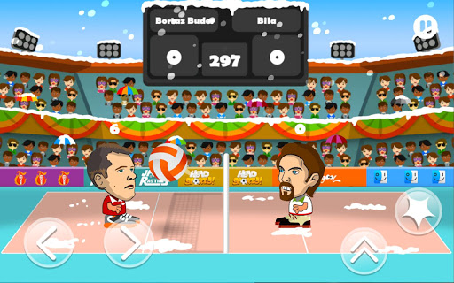 This Volleyball game is a head ball game with a simplified version. You can choose your character before each game, and then customize the look of the game area, weather, difficulty, match time etc. and other features of the game. There are four buttons to control your character and score points against your opponent. The two are for moving, one is for jumping and the other is for hitting the ball with your foot or head.