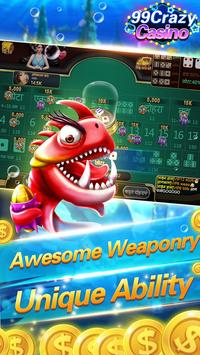 99Crazy Casino is very funny and easy to play. It is a decompression weapon. Catch fish can take you to explore the underwater world. A variety of fish will make you feel cool. There also a variety of slot machines for you Choice, there are European and American style,Asian style. I believe this game can always capture your heart. Baccarat that real licensing effect and SicBo