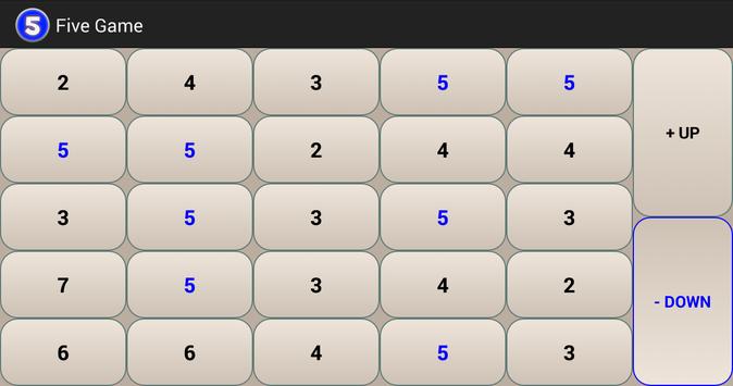 The game is composed of a 5 x 5 table with the number 5.