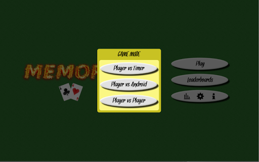 Memory, also known as Match Match, Match Up, Concentration, Pelmanism, Shinkei-suijaku, Pexeso or simply Pairs, is a card game in which all of the cards are laid face down on a surface and two cards are flipped face up over each turn.