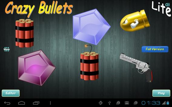 Crazy Bullets is a simple and fun game. Hit the robber, realize the maximum points, deflects the bullet and buy credits. But attention to the bullets, you never know what they hit. The mother of invention for realize the maximum score for each level.