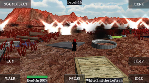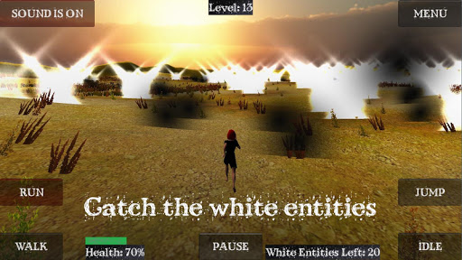 Use the accelerometer to turn, jump and slide to avoid obstacles, collect white entities and blue entities and see how far