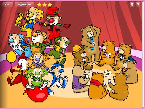 Come one. Come all. It’s circus time! But this is no ordinary circus. Here you’ll be entertained by a bunch of funny clowns and some cool bears. But can you tell what there are more of? Are there more clowns or bears? In this game your child needs to count and decide.