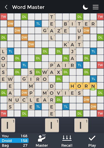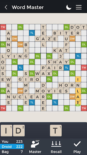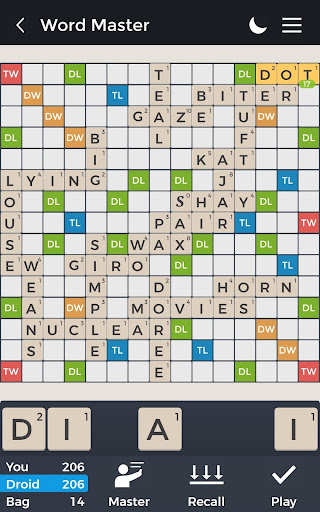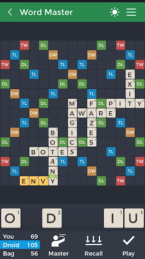 Create words with the 7 letters on your rack and place them on the 15 by 15 tile board. Boost your score by placing letters on the special Double Letter, Double Word, Triple Letter and Triple Word tiles.