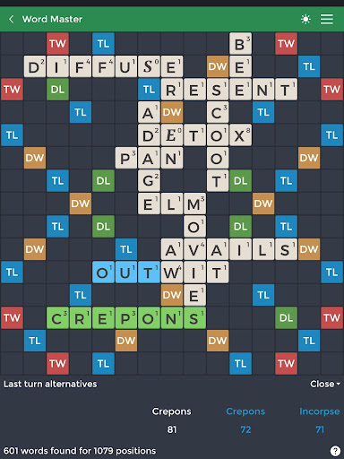 After each turn, you will be able to see which words you could have played. Learn how to use the bonus squares on the board and the standards for the formation of words.