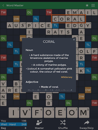 Swipe your finger across any word on the board and get its dictionary definition. (Internet required)