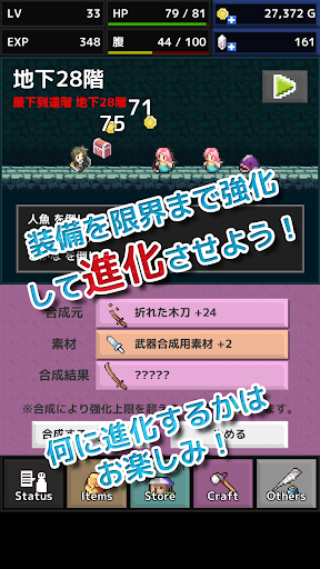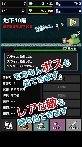 装備を強化して、アイテムを駆使して、地下1000階を目指そう! 装備やアイテムの収集に加えて、放置要素があるダンジョンRPGです。 【ゲームの特徴】 ・地下への進行は自動で行われます。操作不要! ・力尽きた時のペナルティはありません。ガンガン力尽きましょう。 ・冒険をサポートする多彩な装備とアイテムがあります。 ・装備の合成(強化と進化)ができます。 ・放置した時間に応じて報酬があります。忙しい人でも楽しめます!
