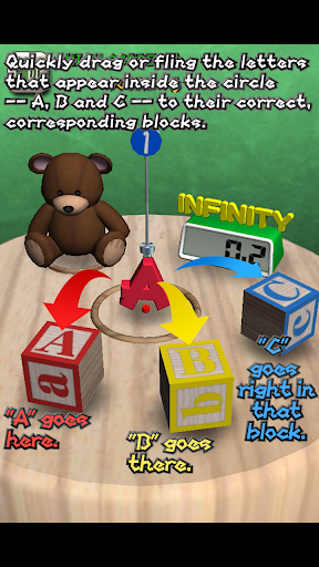 A simple yet addictive game: Quickly drag the letters that appear -- A, B and C -- to their correct, corresponding blocks.