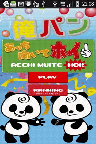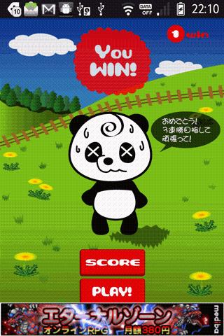 Nu begint het spel met schattige Panda karakter en krijg drie opeenvolgende overwinningen van "1-2-3! (Acchi Muite Hoi)" Panda Character is zo schattig. Wat is "1-2-3! (Acchi Muite Hoi)"? Japanse traditionele Game. Meestal twee spelers battle game. Deze toepassing realiseert het traditionele spel voor android. Player vs Android. Allereerst (1) Bepaal Overtreding of de verdediging door het spelen van de "Jan ken" (papier-steen-schaar). Als je wint met "Jan ken", krijg je Offence voor "1-2-3! (Acchi Muite Hoi)". In het geval van verliezen door "Jan ken", je krijgt Defensie. "STONE" win tegen "schaar" "schaar" te winnen tegen de "papieren" "papier" te winnen tegen de "steen" Als hetzelfde, DRAW. (Re-play van de "Jan ken") (2) Overtreding beweegt de vinger voor het gezicht van Defensie met te zeggen: "1-2 (Acchi Muite)". Na dat, Overtreding beweegt de vinger voor de richting die Offence selecteren met te zeggen "3! (Hoi)". (Selecteer de richting van de 4 richtingen (↑, ↓, →, ←)) Defensie horloges deze vinger en voorspellen wat van richting Inbreuk zal selecteren en Defensie zal beslissen over de andere richting Offence te selecteren en op het moment van "3! (Hoi ) ", Defensie gaat het gezicht van zijn / haar gekozen richting. (Dit programma vervangt het gezicht bewegende actie door de verdediging met "Flick" op het paneel.) In het geval dat Offence vinger richting MATCH met Defensie gezicht richting, Offence WIN, Defensie VERLIEZEN. In het geval dat Offence vinger niet overeenkomt met Defensie gezicht richting, DRAW. Keer terug naar (1) voortzetten van het spel. Tips:-Offence kon niet "verliezen", dus is het belangrijk om overtreding te krijgen door het winnen van de "Jan Ken". -Helaas, je bent de verdediging door het verlies van de "Jan Ken", Forecast de andere richting tegen Inbreuk vinger richting. Daarom kun je tekenen en hebben een kans om Overtreding te krijgen bij de volgende inning.