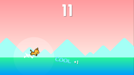 Touch the screen at the right time so that it doesn't fall into the water and jump! My jumping ability gets weaker little by little, but I keep jumping to the point where I can.