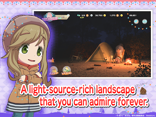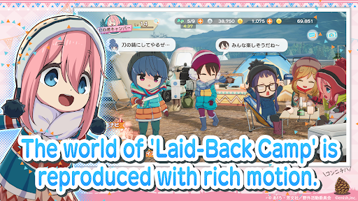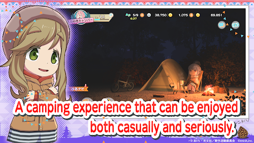 Familiar characters like Nadeshiko Kagamihara, Rin Shima, Chiaki Ōgaki, Aoi Inuyama, and Ena Saitō engage in dynamic and fully-voiced dialogues. Moreover, the game is packed with over 1,000 types of camping gear and vehicles, mouth-watering camp meals, and beautiful sceneries from locations centered around Yamanashi, Nagano, and Shizuoka, bringing you the world of "Laid-Back Camp".
