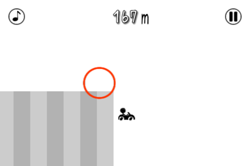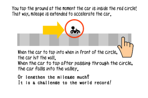 You tap the ground at the moment the car is inside the red circle! That way, mileage is extended to accelerate the car. Or lengthen the mileage much? It is a challenge to the world record!