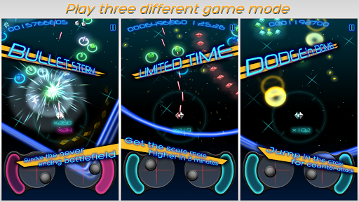 Use the twin sticks to control your ship. and challenge the three different arena.